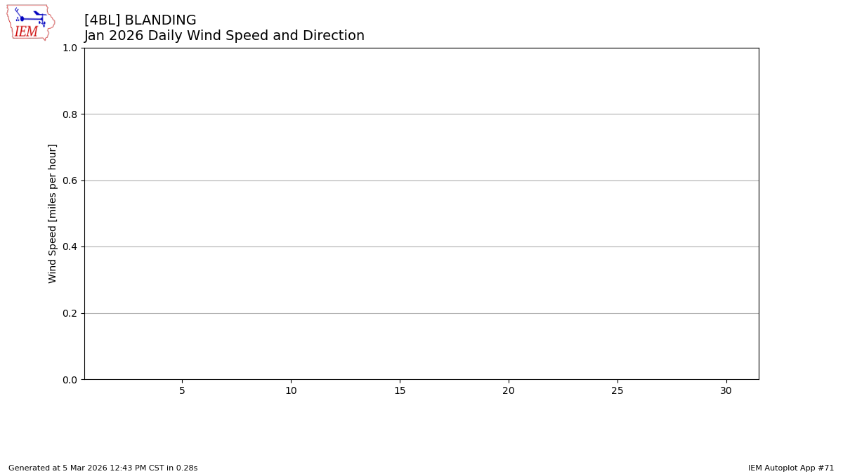 The calendar chart below shows the daily reported climate variables. You can click on a date to display the values for all sites for that day. Time stamps are displayed in the America/Denver timezone. Wind speeds are in mph and temperatures in Fahrenheit. Values flagged with a (E) are estimated by the IEM.