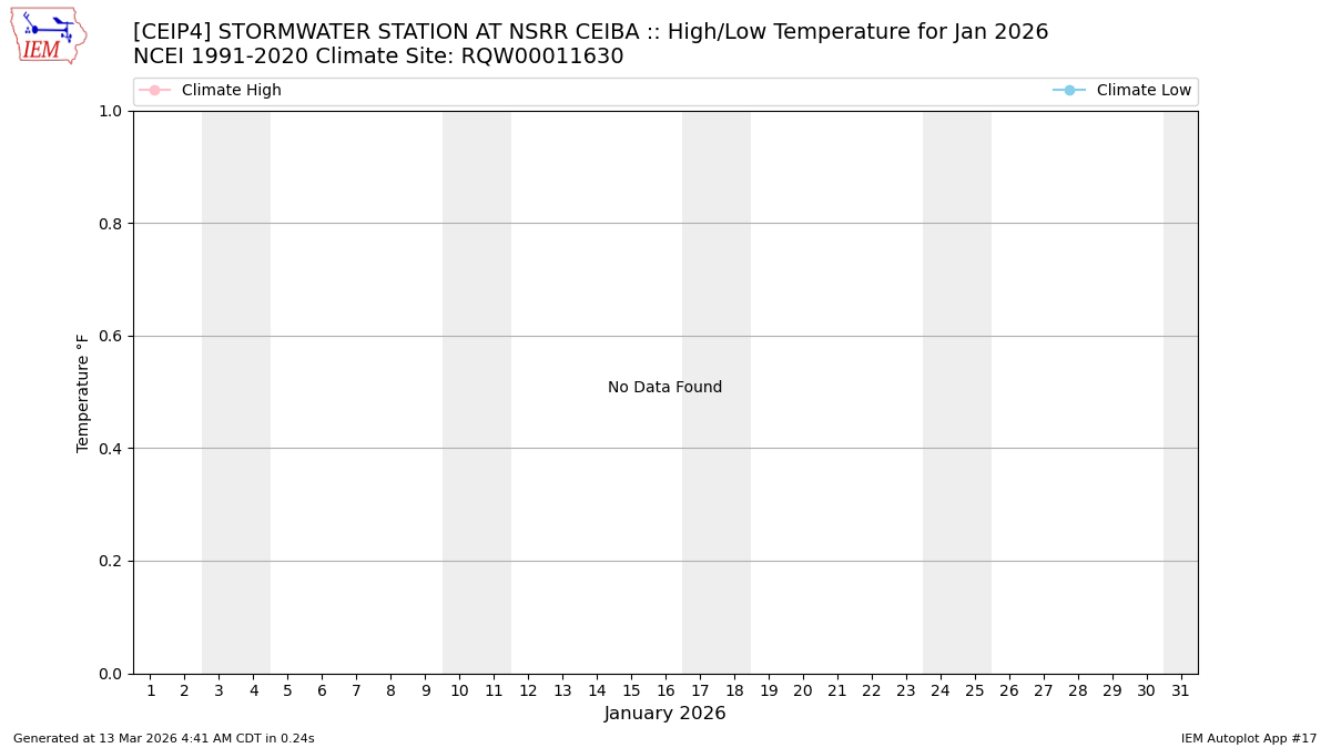 The calendar chart below shows the daily reported climate variables. You can click on a date to display the values for all sites for that day. Time stamps are displayed in the America/Puerto_Rico timezone. Wind speeds are in mph and temperatures in Fahrenheit. Values flagged with a (E) are estimated by the IEM.