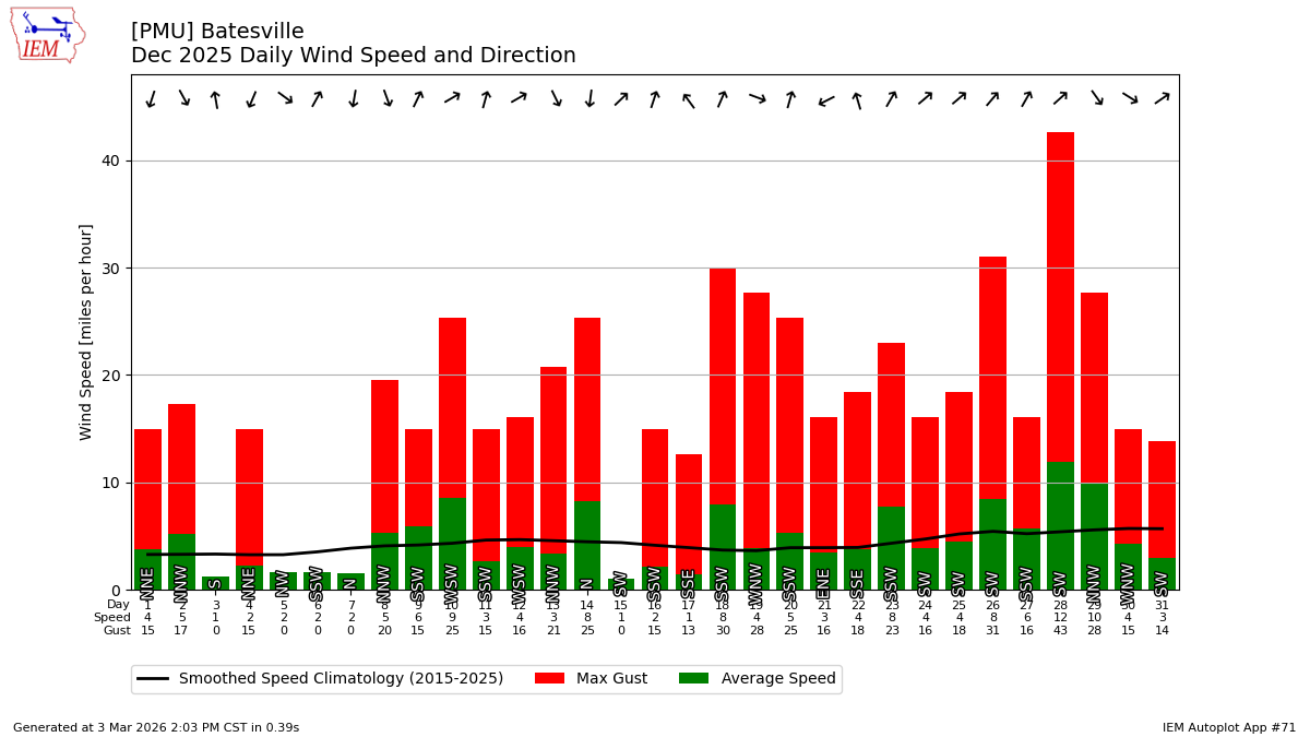Description: This chart is of the daily average wind speeds.