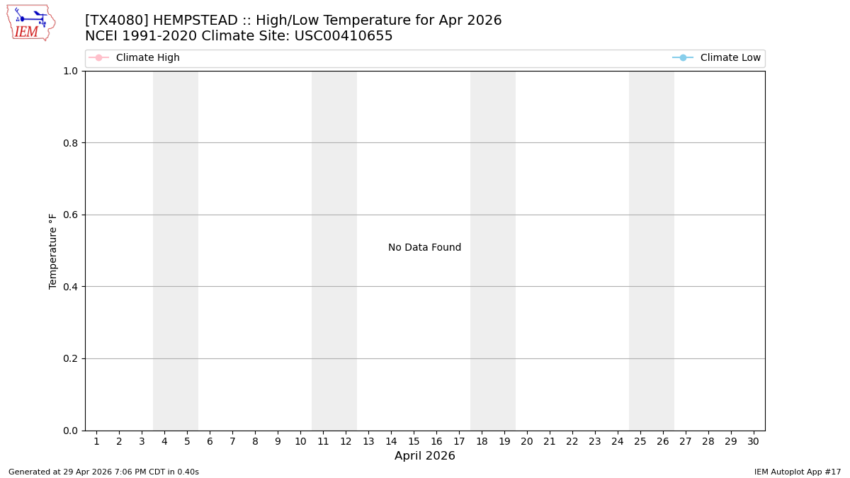 The calendar chart below shows the daily reported climate variables. You can click on a date to display the values for all sites for that day. Time stamps are displayed in the America/Chicago timezone. Wind speeds are in mph and temperatures in Fahrenheit. Values flagged with a (E) are estimated by the IEM.