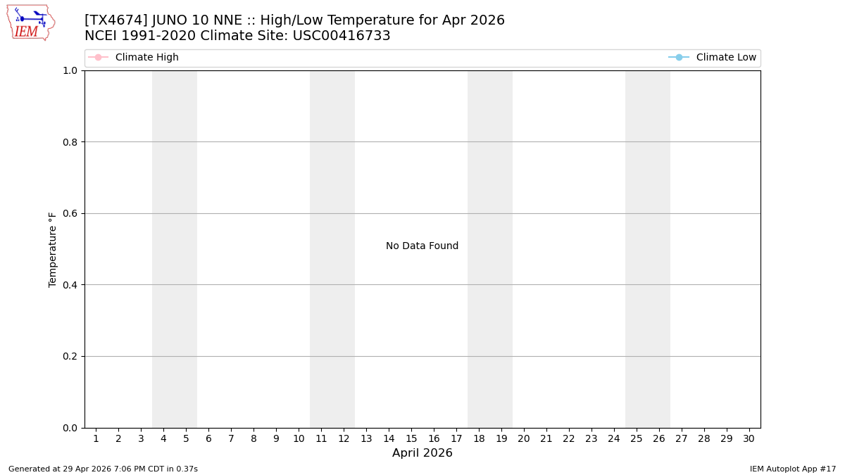 The calendar chart below shows the daily reported climate variables. You can click on a date to display the values for all sites for that day. Time stamps are displayed in the America/Chicago timezone. Wind speeds are in mph and temperatures in Fahrenheit. Values flagged with a (E) are estimated by the IEM.